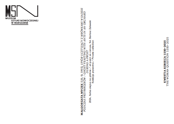 Pocztówka do wystawy "Kwestia Kobieca 1550 - 2025". Wystawa odbywa sie w dniach 21.11.2025 – 03.05.2026 w Muzeum Sztuki Nowoczesnej w Warszawie.