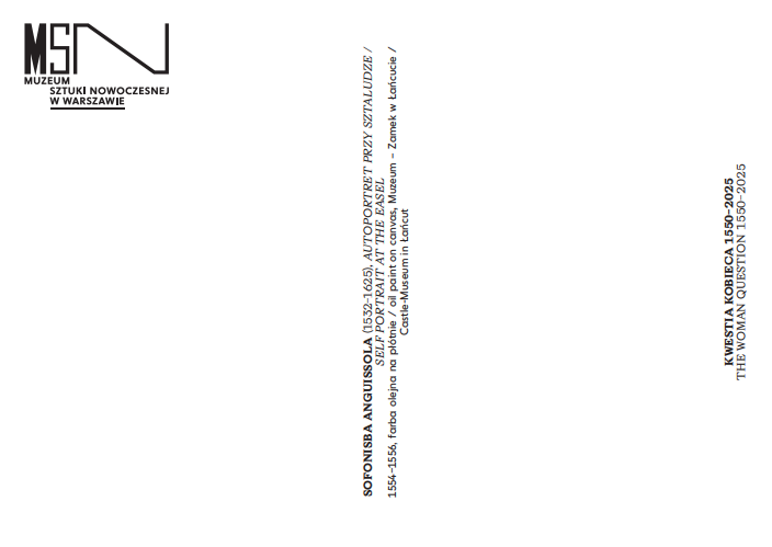 Pocztówka do wystawy "Kwestia Kobieca 1550 - 2025". Wystawa odbywa się w dniach 21.11.2025 – 03.05.2026 w Muzeum Sztuki Nowoczesnej w Warszawie.