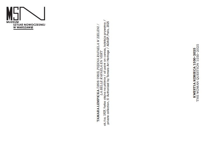 Pocztówka do wystawy "Kwestia Kobieca 1550 - 2025". Wystawa odbywa się w dniach 21.11.2025 – 03.05.2026 w Muzeum Sztuki Nowoczesnej w Warszawie.